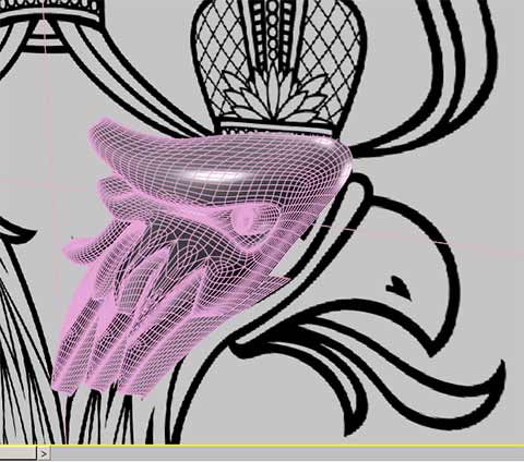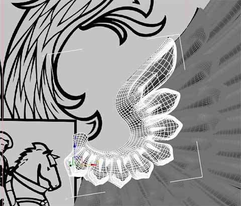 Теперь копируем одно из перьев и создаём верхний ряд перьев. Единственное что здесь надо учесть, что их между собой потом соединим. Получиться плечо цельного крыла нашего летающего хищника.