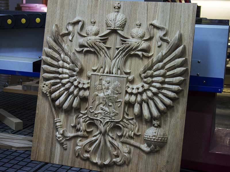 Получив заказ от руководства компании разработать 3d модель барельефа Герба РФ, я собрал всю информацию о размерах заготовки будущего резного декора. Планировалось моделирование барельефа модели stl из щита клееносращенного массива дуба. Максимальный размер заготовки 800 на 800 мм. Толщина 38 мм. Изготавливать всё это дело пришлось бы на фрезерном гравировальном станке ЧПУ Beaver 25aiblt8. Сразу решил найти что-то готовое, в свободном доступе. Порывшись в просторах инета, нашел кое-какую то информацию о гербе моей Родины. В поисковике Яндекс наткнулся на замечательные ресурсы - всё про станки ЧПУ. Также предлагались в бесплатном доступе замечательные модели герба на сайте соцсетей в Контакте. Но своё есть своё. Определил стратегию создания модели Герба России для фрезерования на станке ЧПУ(CNC).